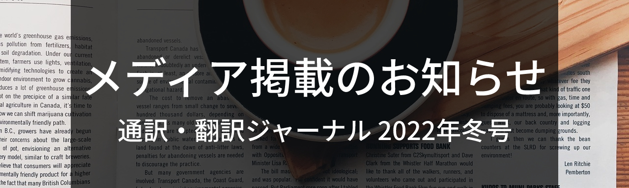 メディア掲載のお知らせ | 通訳・翻訳ジャーナル最新号(2022年冬号)
